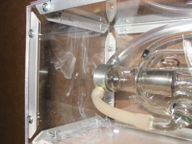 Der zweite Ausbruchversuch zeigte dann auch, daß 50W mit 4mm Durchmesser nicht durchbrennen, sondern langsam das Plexiglas schmelzen. Es hätte sich ein dünnfließender Faden gebildet.